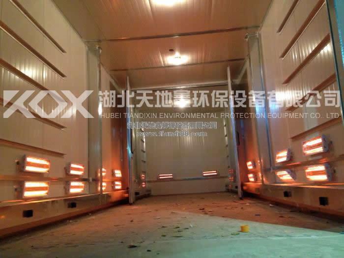 烤漆房(Spray booth)是一種給設備表面進行噴漆染色并烘干的設備,它不但能對設備起到美觀的作用,而且還能保護物品;既可以防止物體在潮濕和灰塵的惡劣環境中遭到腐蝕,噴漆可以防止金屬件被侵蝕,延緩塑料件的老化;同時可以通過噴漆上色對物體達到藝術化審美的設計風格,讓物體外型更美觀,帶來更多的商業價值和視覺美感。烤漆房就是這種專業的設施通過技術處理對物體表面進行裝飾、修復的重要設備。簡言之,烤漆房一般是用來噴涂和烘烤漆的,因此,烤漆房最確切的描述應為“噴烤漆房”。它廣泛用于汽車、機械、五金、家具、玻璃鋼制品、化工設備等行業的工件表面噴漆、烤漆施工作業。(遠紅外加熱方式為家具烤漆中最為常用經濟的加熱方式) 半過濾吊頂相對全國旅吊頂經濟實惠,后期更換過濾棉成本大大降低,一半烤漆房面積比較大會選用此種結構??酒嵝Чc全過濾吊頂無異。噴漆時,外部空氣經過初級過濾網過濾后由風機送到房頂,再經過頂部過濾網二次過濾凈化后進入房內。房內空氣采用全降式,以0.2-0.3m/s的速度向下流動,使噴漆后的漆霧微粒不能在空氣中停留,而直接通過底部出風口被排出房外。這樣不斷地循環轉換,使噴漆時房內空氣清潔度達98%以上,且送入的空氣具有一定的壓力,可在家具的四周形成一恒定的氣流以去除過量的油漆,從而最大限度地保證噴漆的質量??酒釙r,將開關調至烤漆位置,烤房內溫度迅速升高到預定干燥溫度(30℃—60℃)。然后對家具進行烤漆,最后當烤漆時間達到設定的時間時,烤漆房自動關機,烤漆結束。